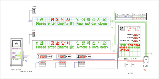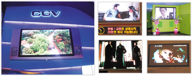 Display colorful move picture admission, turn and various information with moving picture, text and graphic at theater as like CGV.