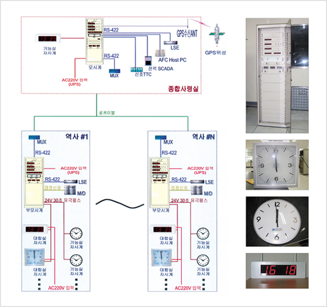 Receiving time signal from GPS, provide unified time signal in subwauy, etc